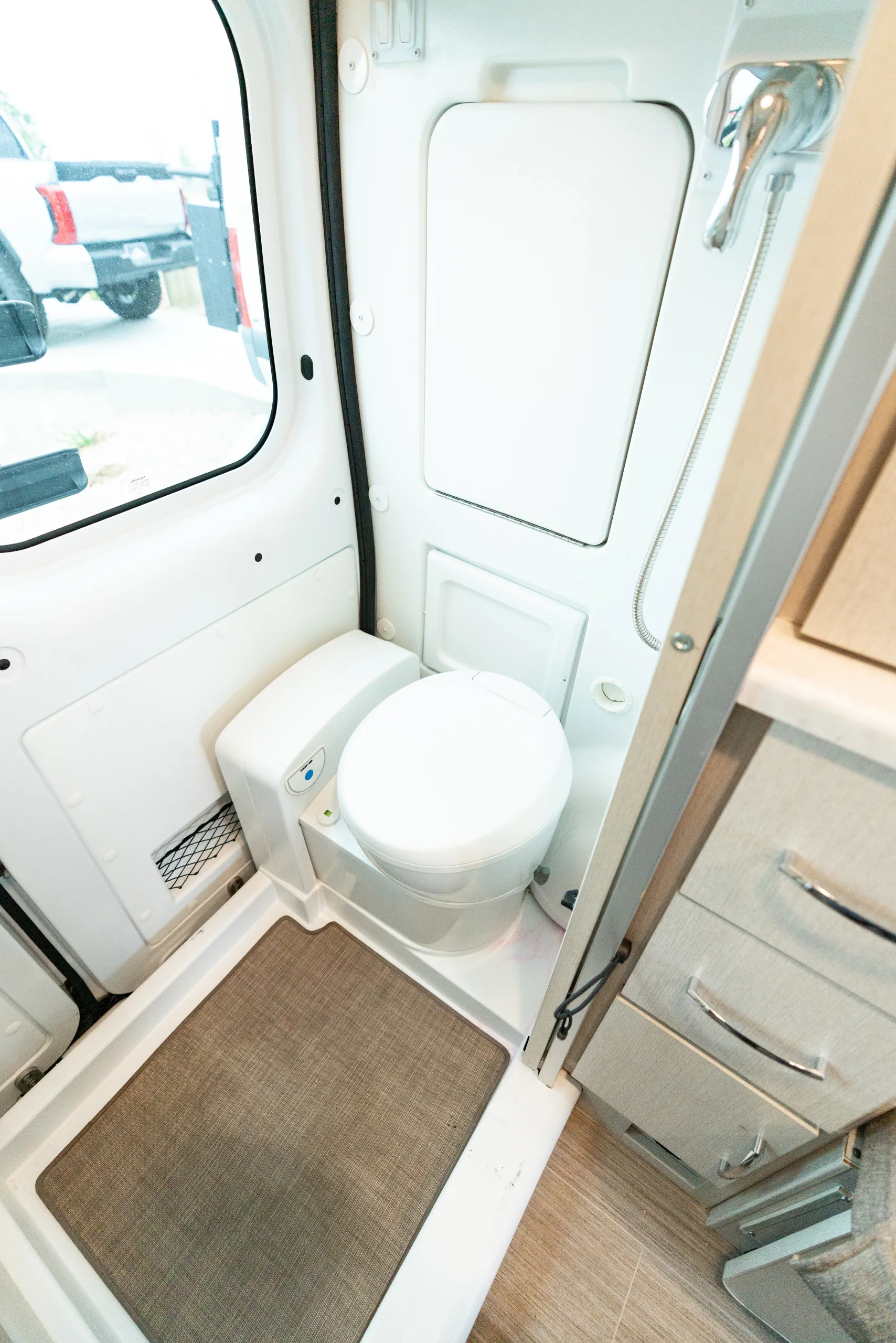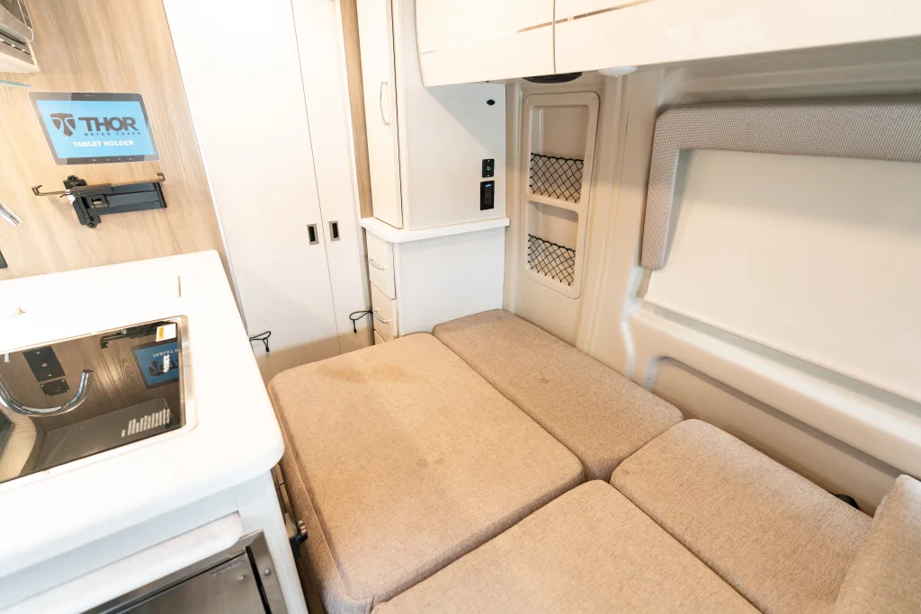 Specs: Gas Cooktop, Microwave, Interior Shower, Cassette Toilet, Onan RV QG 2800 Gas Generator, 1,000 Watt Inverter, Hot Water System, Rooftop A/C