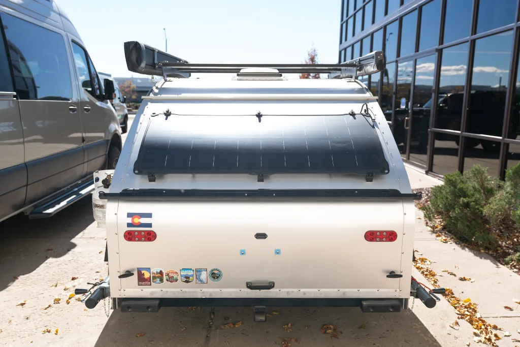 Specs: Blue Grey Exterior, Grey Interior / Black Cabinets, Seat 2 / Sleep 2 Layout, 48V A/C, Heater, 200 Watts Solar